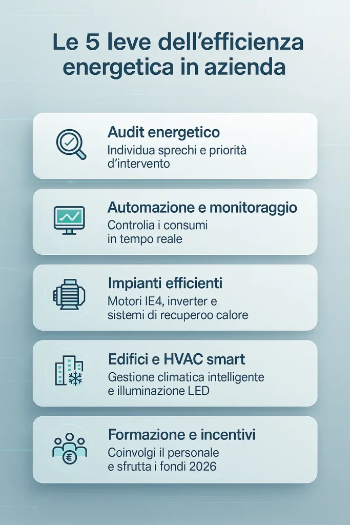 L’efficienza energetica in azienda non è più una scelta opzionale: è un investimento che rafforza la competitività e la sostenibilità.